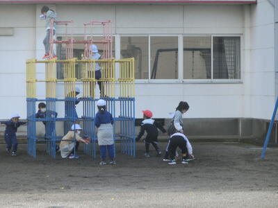 時間が余ったので、鬼ごっことアスレチックを行いました。
