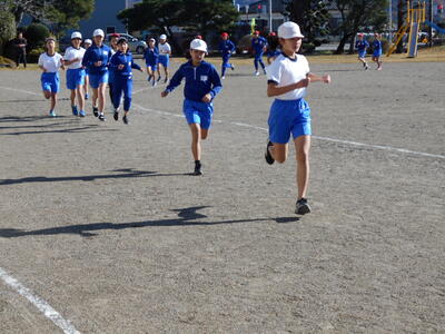 12月1日に行わるる持久走大会に向けて、3、4年生が試走を行いました。全員が走りきることができました。