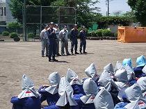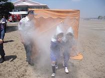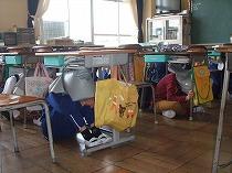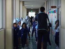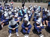 19日は地震や火災から身を守る避難訓練でした。机の下への避難したり、煙体験ハウスの中を初めて歩いたり