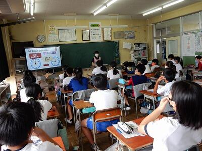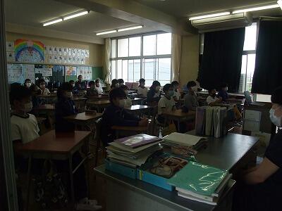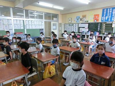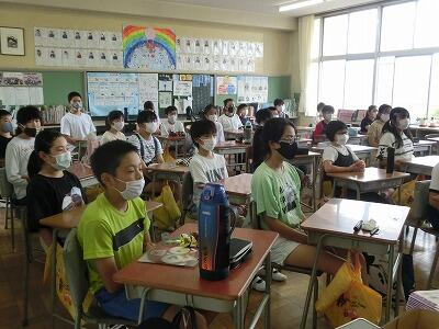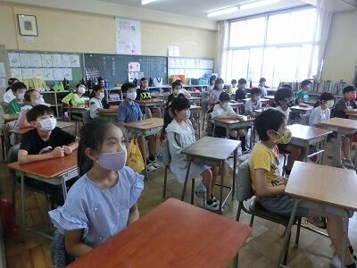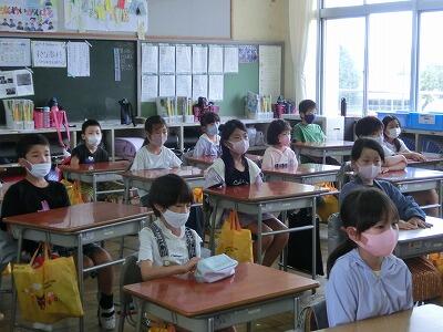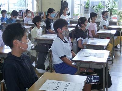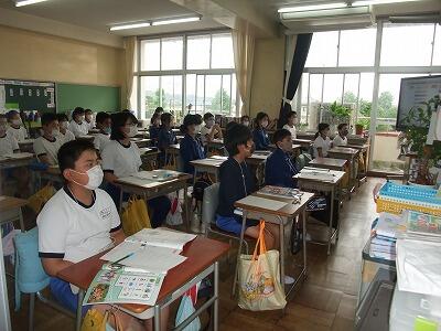 修学旅行の2週間前となり、養護教諭から新型コロナウイルス感染症対策を含む保健指導を行いました。今後はガイドラインにもとづき、本人の検温・健康観察に加え、同居家族への健康観察をお願いします。また、普段から十分な睡眠・栄養をとり、規則正しい生活を心がけるようご指導、ご協力をお願いします。週末には運動会があり、その後連休もありますので、改めて児童の健康管理や不要不急の外出はできるだけ控えるようお願いします。