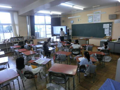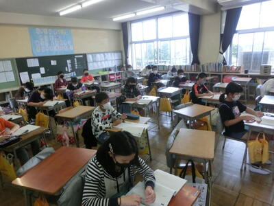 今日は1~4年生が遠足であり(遠足の写真は後日公開します)、学校がとても静かでした。5、6年は静かに、そして真剣に授業に取り組んでいました。