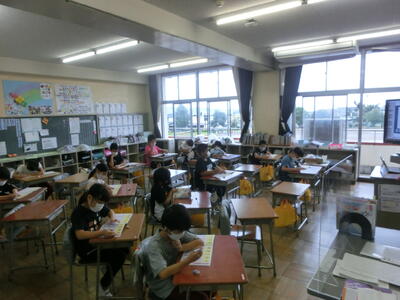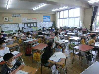 分散登校も今日で3回目となりました。人数が少なく、教室に全員そろっていないので寂しい面もありますが、人数が少ない点を生かし、よりきめ細やかな指導や支援に心がけています。