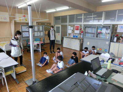 毎週の金曜日に図書館司書が来校し、図書室の整備を行っています。また、給食の時間には、本の読み聞かせも行っています。現在、新型コロナウイルス感染症対策として、給食の時間は前を向いて黙食を行っていますので、子供たちは読み聞かせを楽しみにしています。