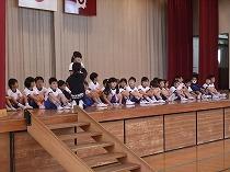 3学期最終日。1~5年生の修了式と、森先生・岡田先生の離任式が行われました。