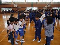児童集会がありました。6年生の班長さんを中心に、1年生と交流を深めるために、
