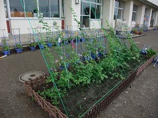 1、2、3年生が栽培している、アサガオ、ミニトマト、ホウセンカが順調に育っています。学校に来られた際には、ぜひ御覧ください。