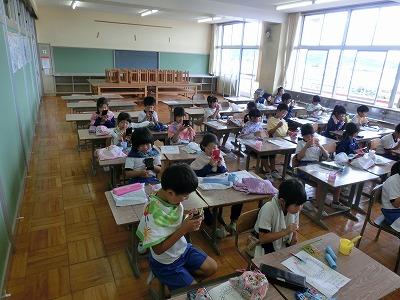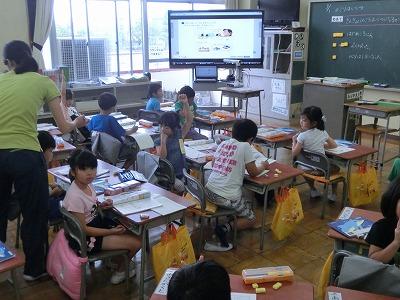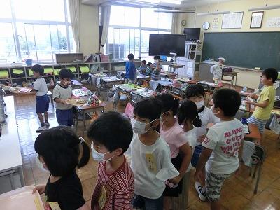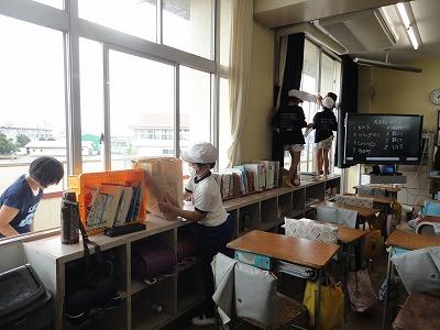 1年2組のエアコン工事が夏休み中に終わりました。1年2組の児童は元の教室に戻り、快適に勉強することができました。引っ越しでは、5,6年児童や保護者の皆様に大変お世話になりました。