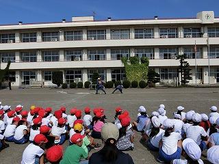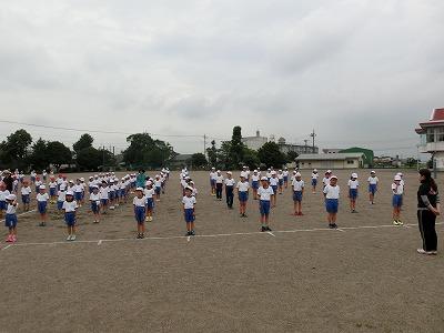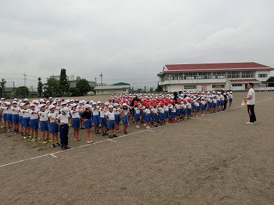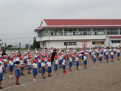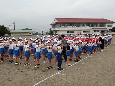 業間(運動タイム)を使い、運動会に向けての整列やラジオ体操の練習を行いました。