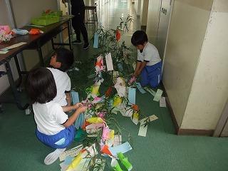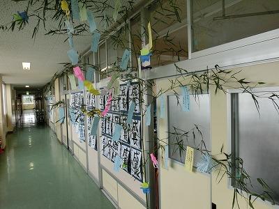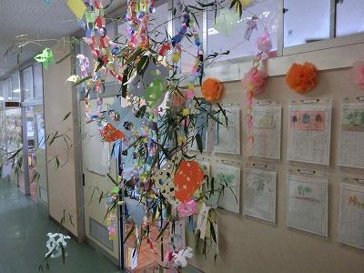 出来上がった「七夕かざり」が、各教室の廊下に並んでいます。とてもきれいです。
