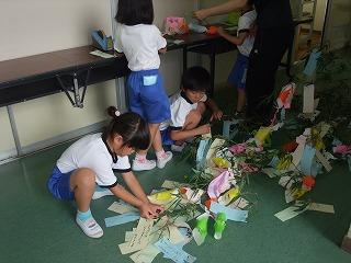 7月7日の七夕を前にどのクラスも七夕のかざりつけをしました。心をこめて、短冊に願いことを書いたり、折り紙で作ったかざりを笹につけたりしました。今年の七夕には、織姫と彦星が会えるといいですね。