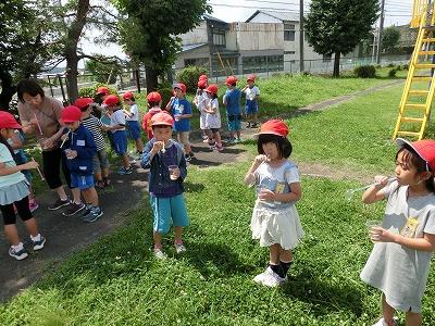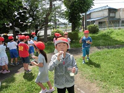 1年生が生活科の授業で、シャボン玉づくりを行いました。大きなシャボン玉をつくっている児童もいました。
