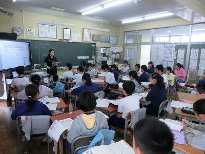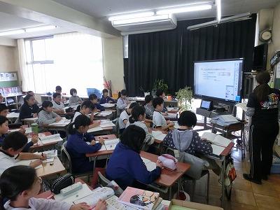 本校では電子黒板など、ICT機器を活用した授業づくりに積極的に取り組んでいます。タブレットが導入され、電子黒板の活用がさらに充実しました。