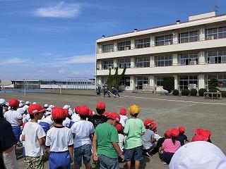 昨日は台風の影響で臨時休業となりましたが、台風も去り暑い一日となりました。子どもたちは、そんな暑さにも負けずに、運動会の練習に励んでいました。