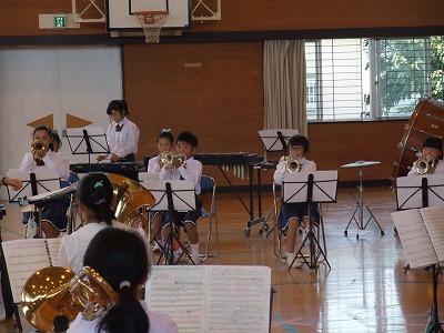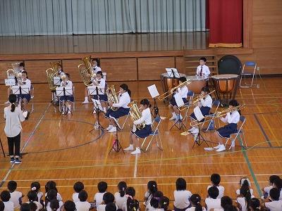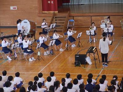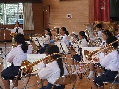 10月1日(火)の音楽タイムは、金管バンド部の発表でした。金管バンド部のみんなは、何か月も前から音楽祭に向けて練習を続けてきました。全校生が迫力のある演奏に聴き入りました。音楽祭当日もすばらしい演奏を聴かせてくれることでしょう。