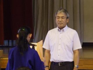 式の後で、郡市水泳記録会、新体力テスト、マラソン大会で活躍した友達の表彰がありました。
