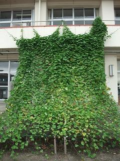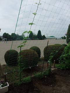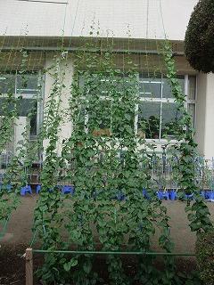 すでに、校舎の2階近くまでつるが伸びているものもあります。