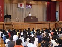 夏休みの過ごし方の話などがありました。事故や健康に気を付け、楽しい夏休みを過ごして下さい。また、終業式の
