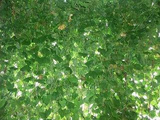 2年教室前のオカワカメです。2階までとどきました。裏側はとても涼しそうです。