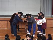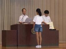 始業式後には、表彰がありました。夏休み中も各種大会で児童は頑張っていました。