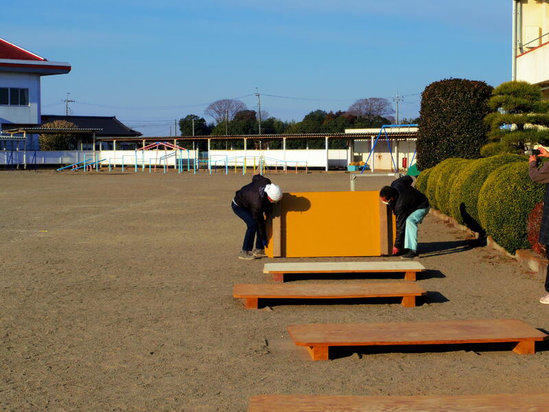 昼休みになると、子供たちは、さっそく新しいジャンピングボードを使って練習していました。