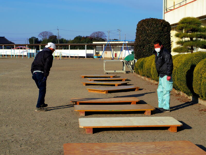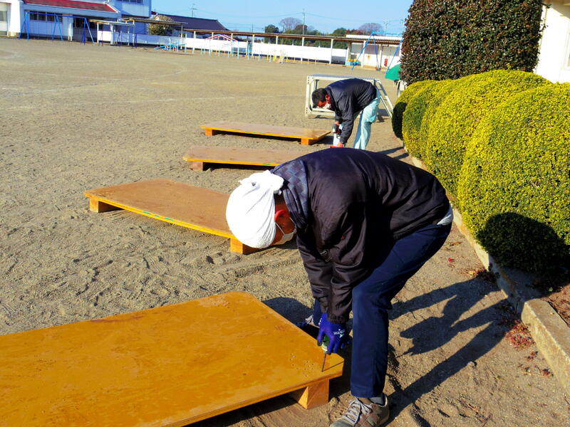 そんな中、2月1日(水)ジャンピングボードを寄贈してくださった ハヤセ工務店様 が ジャンピングボードの点検と修理に来てくださいました。