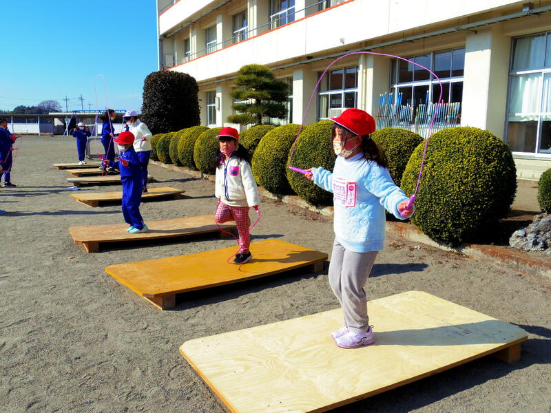 今の時期、子供たちは、縄跳びカードの上級を目指して、短縄跳びの練習に取り組んでいます。