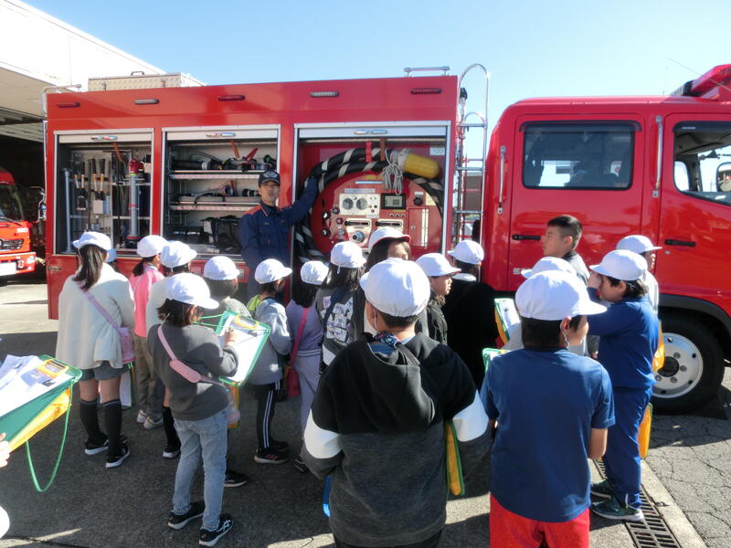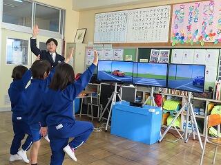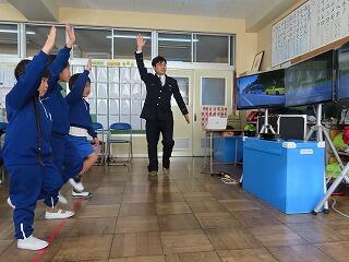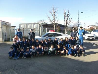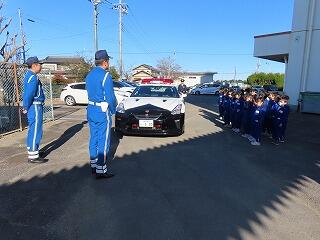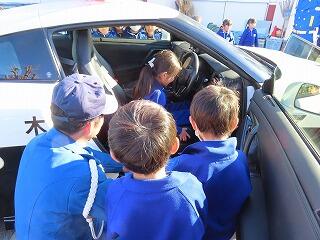 交通安全のお話を聞いたり、シュミレータで横断歩道の渡り方の練習をしたりしました。最後には、日本に1台しかないGTRのパトカーにも一人ずつ乗せていただきました。貴重な体験をさせていただき、本当にありがとうございました。横断歩道を渡るときは、右と左をよく確認しながら渡ります!