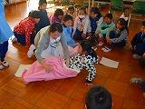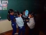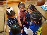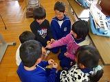 「ずいずいずっころばし」を歌いながら手遊びをしています。むかしから伝わるわらべうたは、やっぱりいいものです。男の子も女の子もなかよしの2年生です。