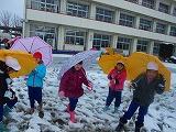 今年の冬は、暖かいと思っていたら、突然の雪。一面の銀世界に子どもたちは大喜び。
