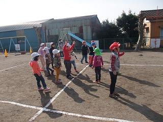 生活科の学習で、物部保育所に行ってきました。外でドッジボールをしたり、縄跳びを教えたりしました。