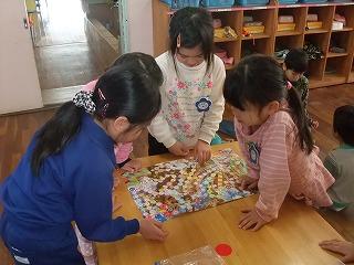 とてもほほえましい写真です。2人組でゲームをしています。仲良く活動し、めあても達