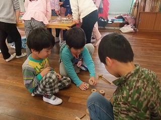 室内では、折り紙やすごろく、ぬりえ、けん玉などをして交流しました。活動する中で、自分の小さかった頃のことを思い出しました。