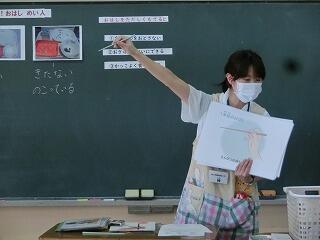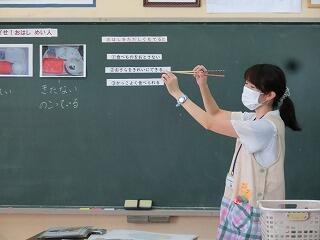 学活:食の指導「おはし名人になろう」 投稿日時 : 2020/10/01 2年 第2給食センターの神先生に来ていただき、お箸の使い方について教えていただきました。お箸の持ち方を教わり、おはじきをお箸ではさむ練習などもしました。最後に、マナー違反となるお箸の使い方、さし箸やまよい箸なども知りました。その日の給食でお箸が出ましたが、みんな上手に使って、ごはん1粒も残さずにきれいに食べることができました。はなまる Tweet