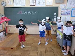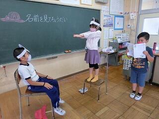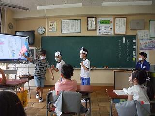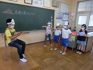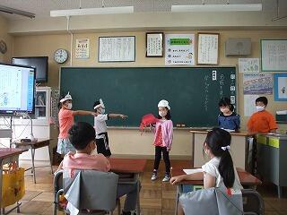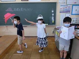 国語「名前を見てちょうだい」 投稿日時 : 2020/07/21 2年 「名前を見てちょうだい」は「声やうごきであらわそう」がめあてになります。そのために、場面ごとに話の内容を読み取った後に、声やうごきであらわす練習をしました。最後に、5グループを作り、発表会をしました。みんな初めははずかしそうにやっていましたが、やりだすと楽しくて、もっとやりたい、違う役もやってみたいなどの声がでました。登場人物になりきってせりふを読むことが上手になりました。今後の学習にも生かしていきたいです。 Tweet