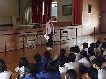 朝会では、校長先生のお話のあと、児童指導主任の中野先生による「みずいろのマフラー」の読み聞かせがあり