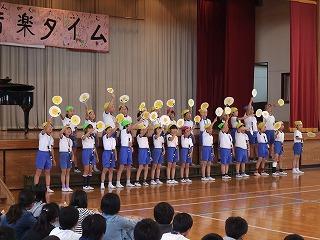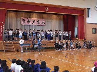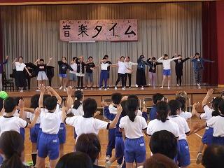 2・4・6年生の音楽タイムの発表がありました。また、最後には全校児童で「WAになって踊ろう」を歌いました。