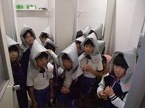 ターを作り、防災ずきんで背中や頭部への被害を防ぐようにしました。
