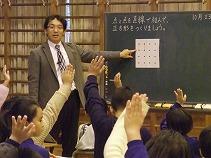 筑波大附属小の先生が、4年生の算数の模範授業を行いました。芳賀郡市内約100名の先生が参観する中、4