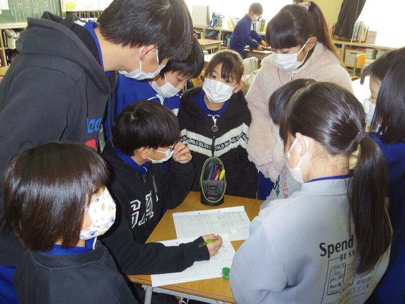 通学班の通学状況を調べ、仮通学班を編成しました。6年生は新通学班編成のアドバイスを行いました。
