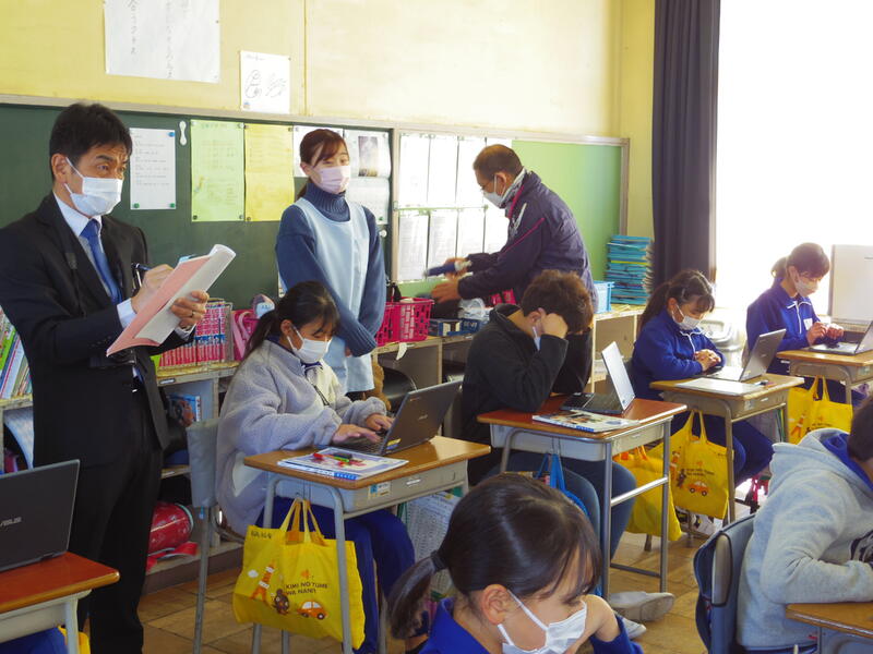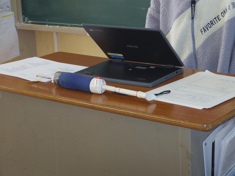 学校保健安全法に基づき、学校では、教室の自然換気定期検査を行っています。