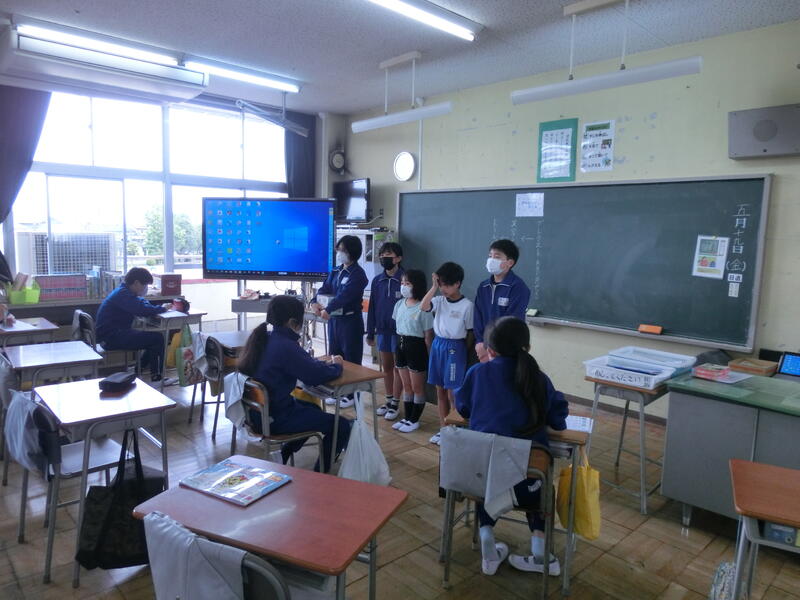 各教室で企画委員会の児童が「おはようございます。」というあいさつをすると、教室の児童たちも大きな声であいさつを返すことができました。