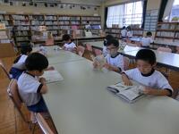 毎週金曜日の給食の時間には、校内放送で、学校図書司書による読み聞かせを実施しています。