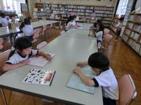今日から1年生も図書室の本を借りることになったので、司書の先生から、図書室の使い方や本の借り方などの説明を聞きました。その後に読みたい本を選んで、バーコードを司書の先生に読み取ってもらい、無事に借りることができました。これから、たくさん本を読んでほしいと思います。