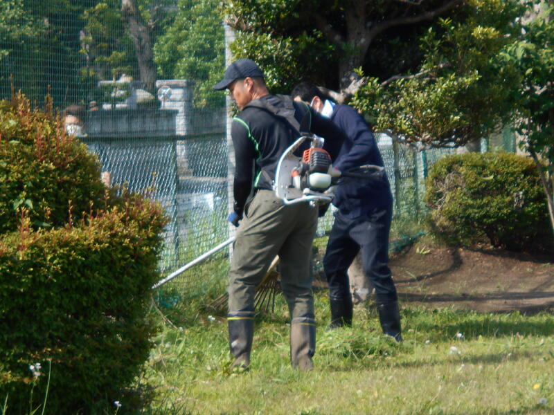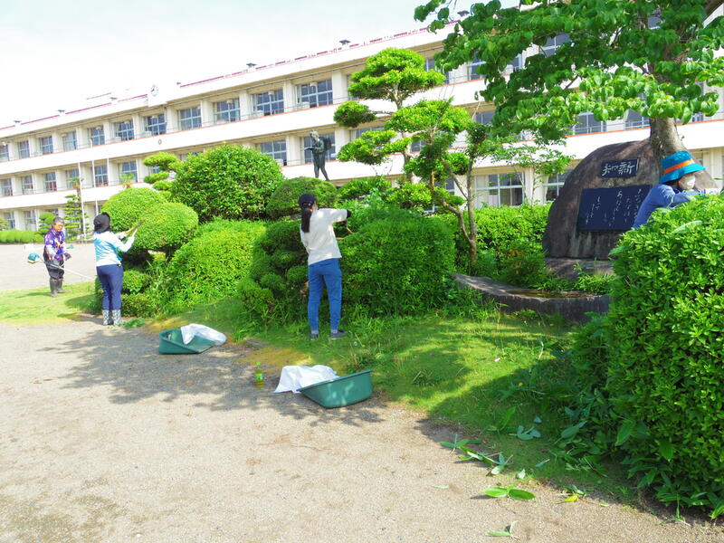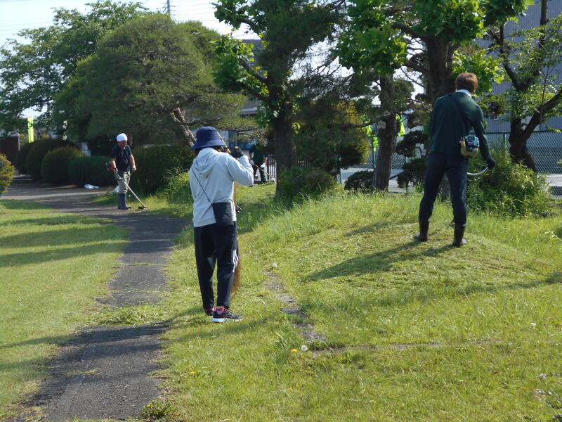今回は、PTA厚生委員会、PTA本部役員、担当教職員 22名で、主に校庭の東側の除草や剪定を行いました。
