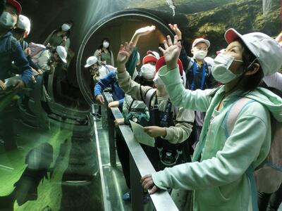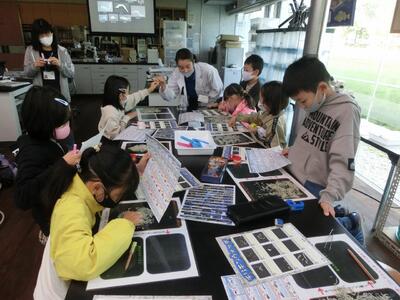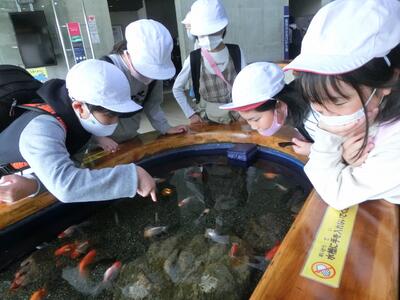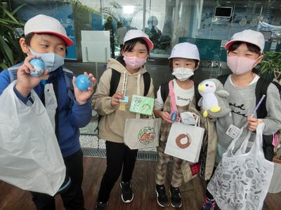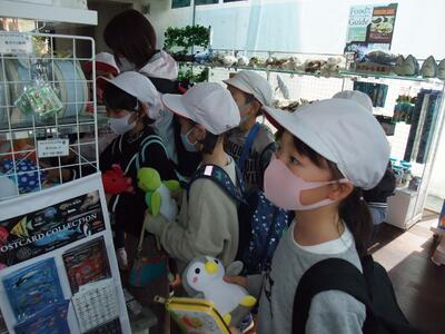 体験学習の「ちりめんモンスターさがし」でちりめんから小さな水生生物を探したり、グループで館内見学をしたり、お小遣いで買い物の学習をしたり、芝生でお弁当を食べたりました。何日も前から楽しみにしていた子どもたちは、終始笑顔で楽しく活動することができました。