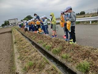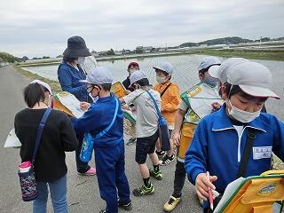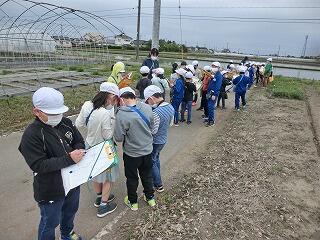 社会の学習で、学校のまわりを歩いて探検してきました。地図を持って、道を確かめながら、学校のまわりはどうなっているのかよく見てきました。「田んぼや畑が多いなあ。」「ビニルハウスが並んでいるね。」「いちごがたくさんあったよ。」「川に玉ねぎが流れてきたよ。」・・・と話していました。これからの学習に生かしていきたいです。