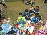 待ちに待ったお弁当タイム。おなかぺこぺこ。外でみんなと食べるお弁当は、またひと味ちがいました。