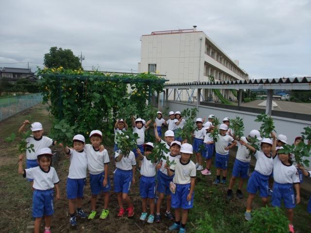 4時間目の生活科の時間に、火曜日に収穫した枝豆を塩ゆでしました。