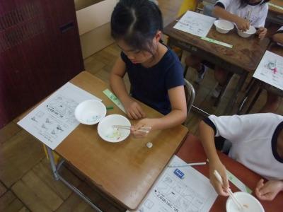 9月27日金曜日、第二給食センターの栄養士の先生に食に関する指導をしていただきました。