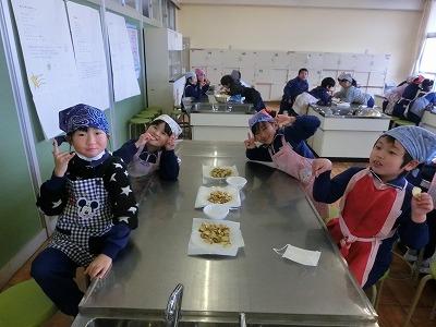 12月10日火曜日、生活科の学習で農園で採れたさつまいもを調理しました。